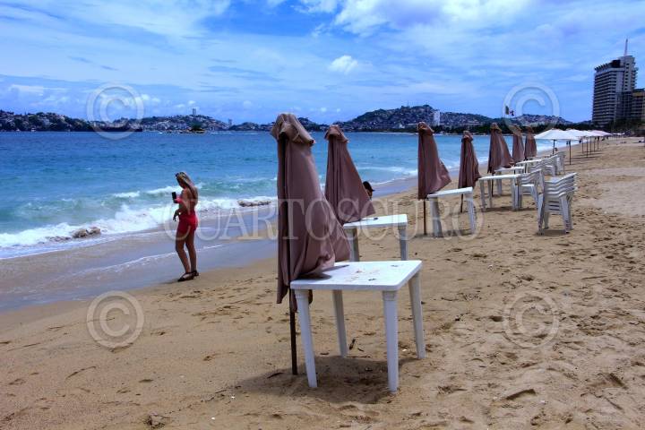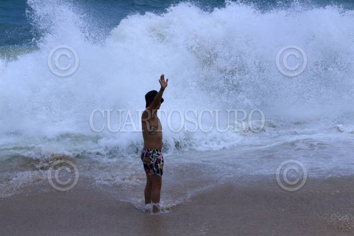 ACAPULCO, GUERRERO, 14JUNIO2018.- El Servicio Meteorológico Nacional alerto de la presencia de la Depresión Tropical 4-E entre las costas de Guerrero y Oaxaca avanzando al puerto de Acapulco a 9 km/h con vientos de 55 a 75 km/h ocasionando lluvias a partir de esta noche y alto oleaje, por lo cual sean suspendido clases en el estado de Guerrero, recomendando a la población ubicar los refugios temporales y estar al pendiente de la evolución de este fenómeno natural. FOTO: CARLOS ALBERTO CARBAJAL /CUARTOSCURO.COM