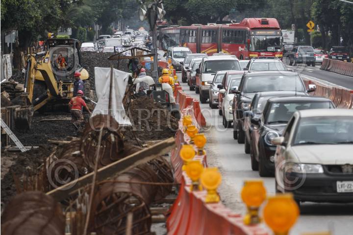 CIUDAD DE MÉXICO, 04JULIO2016.- Continúan los trabajos del deprimido Mixcoac, el cual espera reducir el tiempo para los automovilistas que cruzan Avenida Insurgentes y Río Churubusco. Intenso trafico se observa en la zona por los trabajos. Vecinos de las colonias aledañas interpusieron un amparo para que se detener los trabajos. FOTO: MOISÉS PABLO /CUARTOSCURO.COM