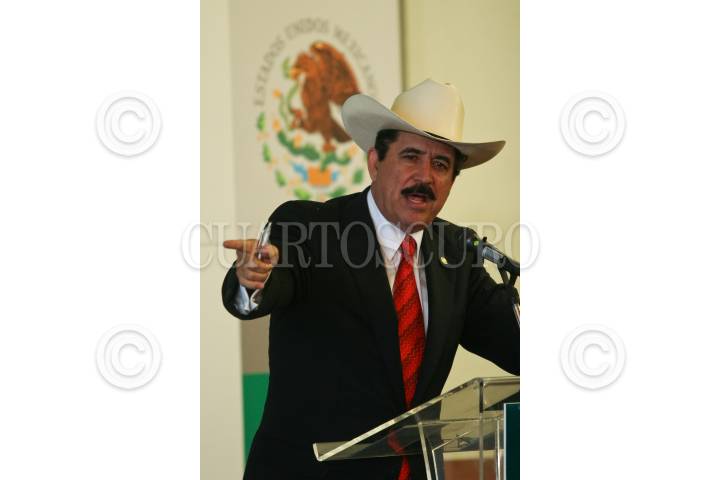 MÉXICO D.F., 05AGOSTO2009.- José Manuel Zelaya, Presidente depuesto de Honduras, invitado por la Senadora del PRD Yeidkol Polevnsky, acudió esta mañana a un encuentro con simpatizantes y gente que le apoya para su regreso a su país par el termino de su mandato, esto en el Teatro del Pueblo. FOTO: GUILLERMO PEREA /CUARTOSCURO.COM