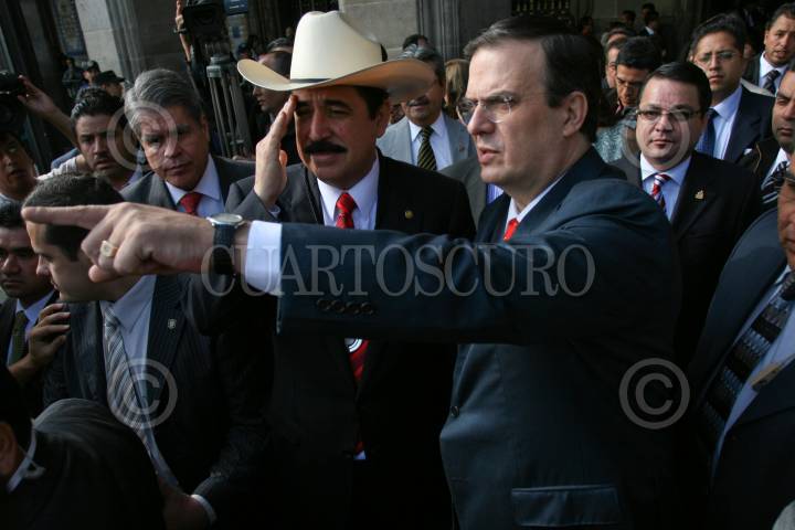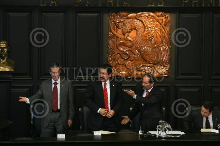 MÉXICO D.F., 05AGOSTO2009.- José Manuel Zelaya, Presidente depuesto de Honduras, acudió esta tarde al Senado de la República donde fue recibido con los honores correspondientes. FOTO: GUILLERMO PEREA /CUARTOSCURO.COM