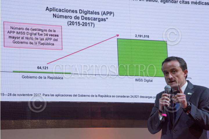 CIUDAD DE MÉXICO, 30NOVIEMBRE2017.- Mikel Arriola, director general del IMSS, inauguró el Foro Nacional de Innovación y Desarrollo Tecnológico, “Realidad Digital”, en el que se presentaron los avances de la estrategia digital en beneficio de la derechohabiencia. Además se hizo la entrega de reconocimientos a los mejores Coordinadores Delegacionales de Informática y Jefes Biomédicos. FOTO: MARIO JASSO /CUARTOSCURO.COM