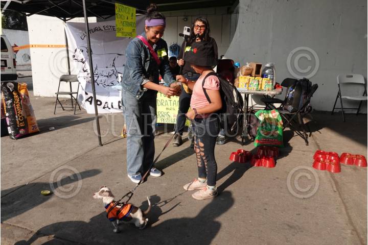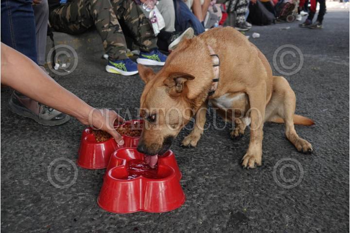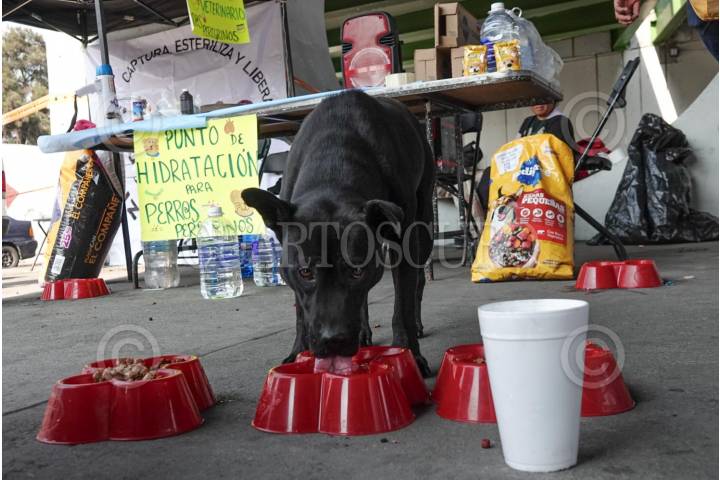 CIUDAD DE MÉXICO, 11DICIEMBRE2024.- Voluntarios del proyecto "Captura, Esteriliza y Libera" colocaron un módulo en Avenida Zaragoza para brindar Servicio Médico -Veterinario a caninos peregrinos que vienen caminando en compañía de familias que se dirigen hacia la Basílica de Guadalupe. El objetivo es proporcionar agua y comida a los perritos, así como un chequeo si lo necesitan, además se busca concientizar a la población de no llevar a sus mascotas en la caminata debido a que sufren por las altas temperaturas y pueden ocasionar daños a su salud. FOTO: GRACIELA LÓPEZ/CUARTOSCURO.COM