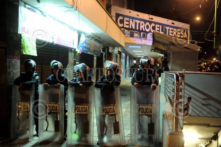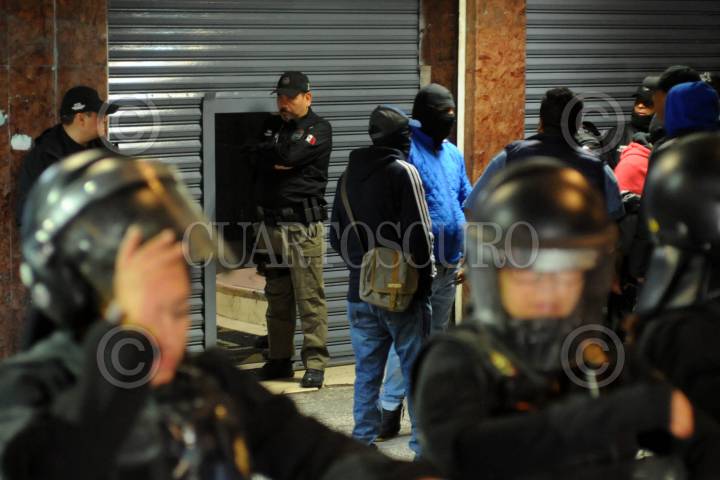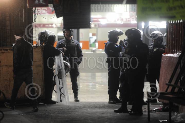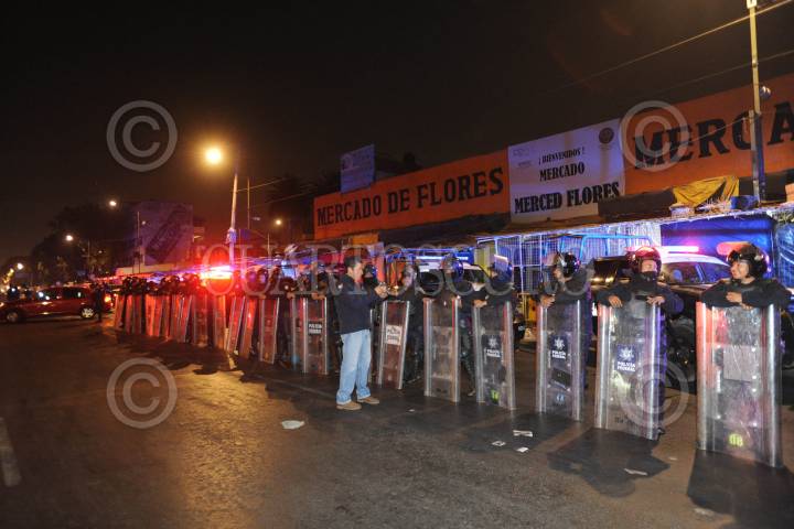 CIUDAD DE MÉXICO., 19ENERO2018.- Personal de la Agencia de Investigación Criminal, apoyados por personal de la policía Federal y Granaderos de la SSP, realizaron un operativo en el corredor Merced en locales de calzado por derechos de autor en contra de marcas registradas. El lugar fue resguardado por uniformados, en lo que se realizó la diligencia. Comerciantes de estos locales comerciales, bloquearon por unos minutos Avenida Circunvalación a la altura de calle San Pablo en la delegación Venustiano Carranza. FOTO: LUIS CARBAYO /CUARTOSCURO.COM