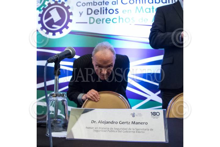 CIUDAD DE MÉXICO, 10OCTUBRE2018.- Alejandro Gertz Manero, asesor en materia de seguridad del gobierno electo, durante el foro: Día Nacional de Combate al Contrabando y Delitos en Materia de Derechos de Autor que se llevó acabo en un conocido hotel de la zona de Polanco. FOTO: MISAEL VALTIERRA /CUARTOSCURO.COM