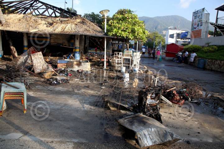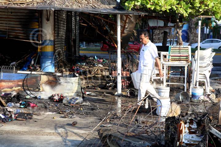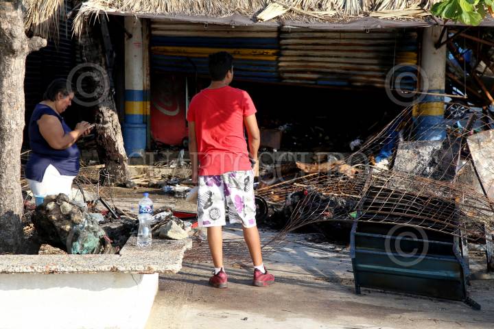 ACAPULCO, GUERRERO, 11NOVIEMBRE2019.- Veinte locales de accesorios de playa se encendieron durante la madrugada de este lunes en la playa Papagayo de Acapulco, los dueños de los locales declararon ignorar las causas y tampoco las autoridades han les dicho las causas del incendio. FOTO: CARLOS ALBERTO CARBAJAL /CUARTOSCURO.COM