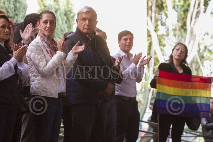 CIUDAD DE MÉXICO, 17DICIEMBRE2017.- Claudia Sheinbaum, precandidata a la Jefatura de Gobierno de Morena, y Andrés Manuel López Obrador, precandidato a la Presidencia de la República por Morena, durante un mitin con simpatizantes en las inmediaciones de la delegación Álvaro Obregón. FOTO: MOISÉS PABLO /CUARTOSCURO.COM