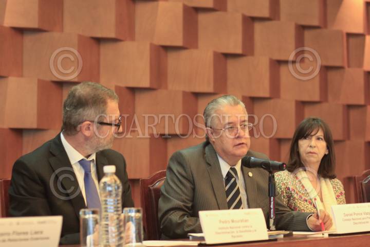 MÉXICO, D.F., 28OCTUBRE2014.- Pedro Mouratain, Instituto Nacional contra la Discriminación, la Xenofobia y el Racismo de Argentina y Daniel Ponce Vázquez, Consejo nacional para Prevenir la Discriminación y Patricia Vaca, embajadora de Argentina, durante la firma de acuerdo del INADI y Conapred en la Secretaría de Relaciones Exteriores. FOTO: MOISÉS PABLO /CUARTOSCURO.COM