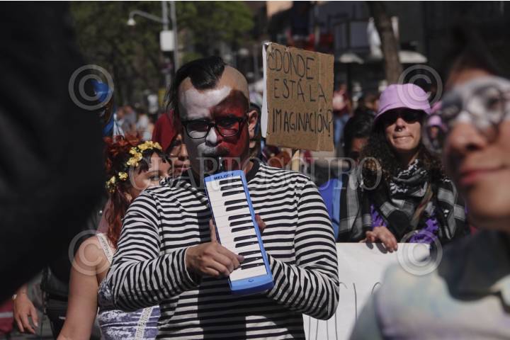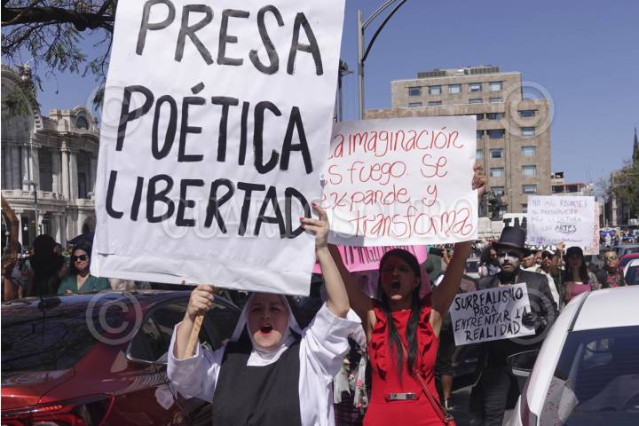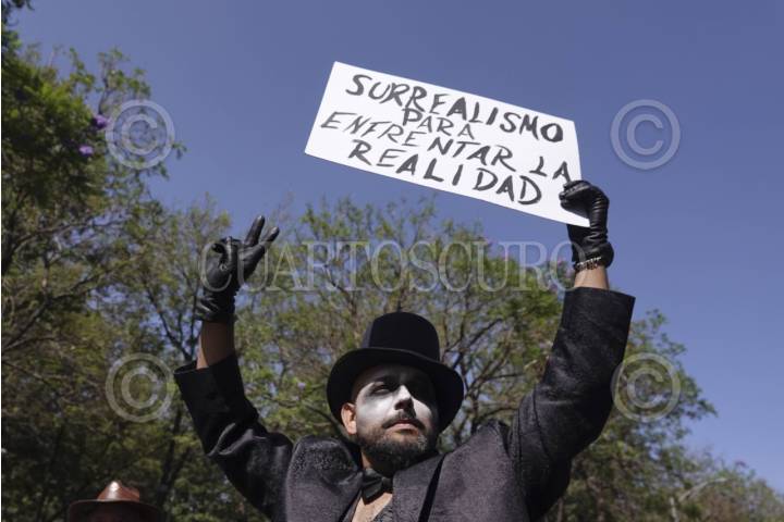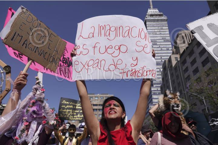 CIUDAD DE MÉXICO, 27ABRIL2025.- Durante la Marcha Onírica, jovenes exigieron la búsqueda de la liberación de la imaginación, con el fin de rechazar la vida bajo el dominio de los monolitos y el uso desmedido de celulares y en contra de la cultura del espectáculo, la especulación, del conservadurismo que retare ideologías: así como condiciones dignas para el trabajo onírico.La manifestación se realizón Avenida Juárez. FOTO: GRACIELA LÓPEZ/CUARTOSCURO.COM