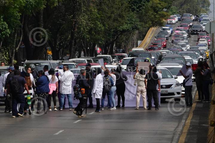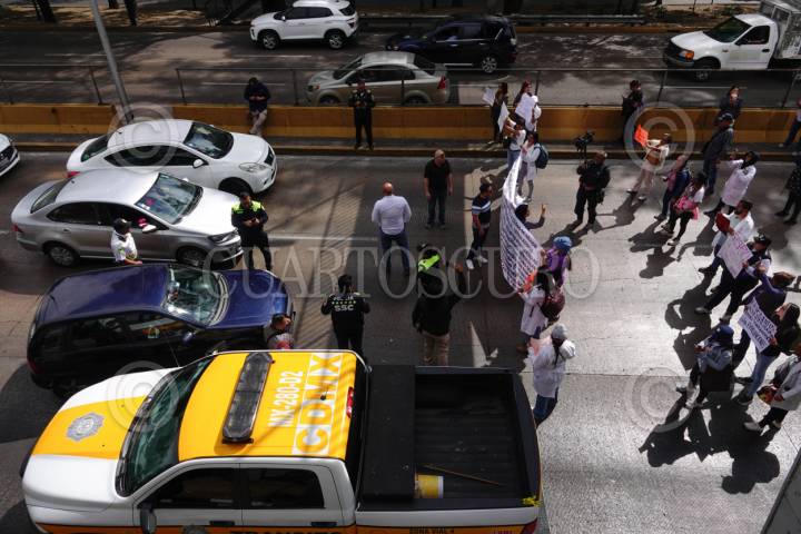CIUDAD DE MÉXICO, 16FEBRERO2024.- Peritos de la Fiscalía General de Justicia de la Ciudad de México (FGJCDMX) se manifestaron con un bloqueo que partió desde avenida Universidad hasta Río Churubusco. Las y los inconformes exigen insumos por parte de la Fiscalía, o bien, el pago de los mismo ya que han sido ellos quienes los pagan para poder trabajar. FOTO: ROGELIO MORALES/CUARTOSCURO.COM