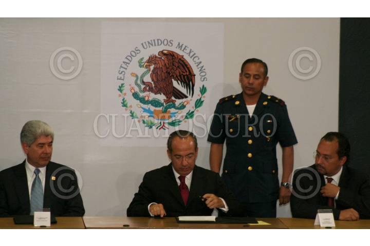MÉXICO, D.F. 12ABRIL2007.- El presidente Felipe Calderón Hinojosa firmó el decreto de derogación de delitos contra periodistas. FOTO: PAOLA HIDALGO/CUARTOSCURO.COM