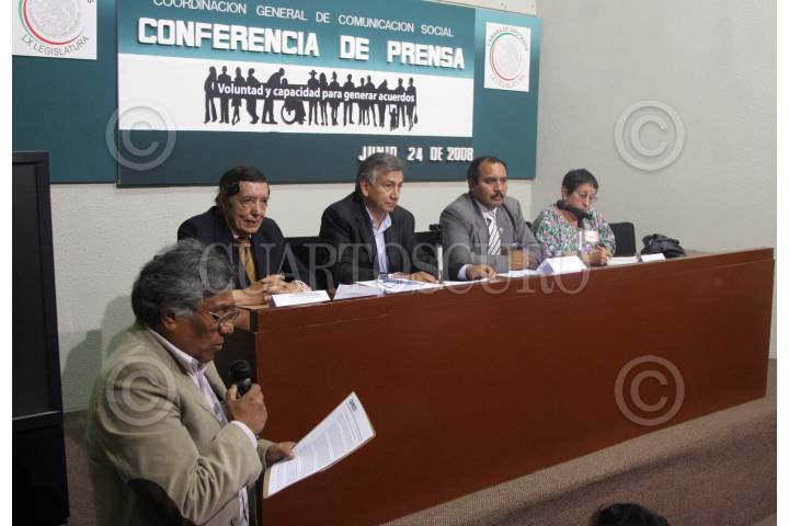 México D.F., a 24 de Junio de 2008.- Conferencia de prensa de la Comisión de Seguridad, que encabeza el legislador perredista, Rafael Ramos Becerril, demandaron la derogación de la Ley del ISSSTE. FOTO: VICTORIA VALTIERRA/CUARTOSCURO.COM