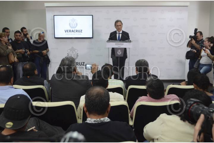 XALAPA, VERACRUZ, 16ENERO2017.- Miguel Ángel Yunes Linares gobernador del estado anuncio que presentó una iniciativa de Reforma a la Ley de Tránsito ante el Congreso Local con el fin de derogar las fotomultas. FOTO: ALBERTO ROA /CUARTOSCURO.COM