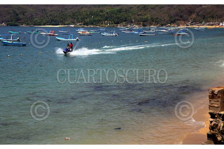 ACAPULCO, GUERRERO, 25MARZO2019.- En la bahía de Santa Lucía de Puerto Marquez se hundió un barco que derramó diesel, elementos de la Marina iniciaron la recolección de combustible derramado, sin embargo no hubo restricción para que los bañistas nadarán en la zona aledaña del percance, militares resguardaron el lugar. FOTO: BERNANDINO HERNÁNDEZ /CUARTOSCURO,COM
