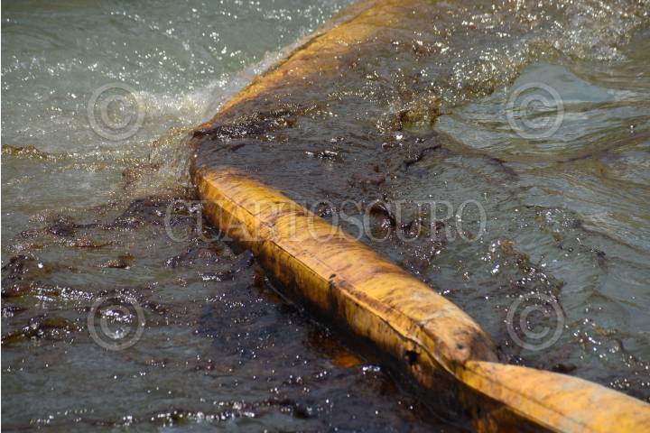 PARAÍSO, TABASCO, 07MAYO2025.- Fuga de aceite una línea de hidrocarburo en la terminal marítima de Dos Bocas en alta mar amenaza ecosistemas y economía. La mancha de aceite ha provocado un desastre ambiental que pasó del mar, en el Golfo de México, a la laguna Mecoacán, Cheneque y al Río Seco, donde Manglares, considerados defensa natural contra huracanes y refugio de larvas de ostiones en sus raíces están contaminados por grumos de aceite; el petróleo arruinó bancos ostrícolas y la fauna acuática comienza a morir. Unos 1,500 pescadores paralizaron sus actividades y sufrieron daños en sus artes de pesca, de igual manera, restauranteros del corredor turísticos reportan pérdidas por baja afluencia de visitantes. La Isla Andrés García, Nuevo Torno Largo y el Bellote, así como playas en la zona costera resultaron afectadas. FOTO: LUIS LÓPEZ/CUARTOSCURO.COM