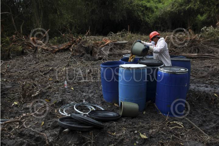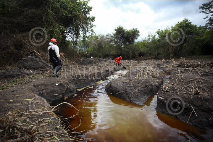 TIERRA BLANCA, VERACRUZ, 13SEPTIEMBRE204.- A dos semanas del derrame de gasolina premium en el Río Hondo, la dimensión del daño ecológico en la riviera exhibe severas consecuencias como la resequedad de árboles, plantas afectadas, nula fauna y el transpirar de combustible en la tierra, mismo que fue almacenado en una zanja y arrastrado de nueva cuenta al río debido a las fuertes lluvias. FOTO: FÉLIX MÁRQUEZ /CUARTOSCURO.COM