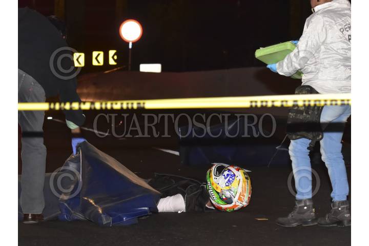 NAUCALPAN, ESTADO DE MÉXICO, 23OCTUBRE2019.- Dos jóvenes de 20 y 22 años de edad perdieron la vida al derrapar la motocicleta donde viajaban sin casco protector en la Super Avenida Lomas Verdes y la Vía Adolfo López Mateos. FOTO: CRISTIAN HERNÁNDEZ /CUARTOSCURO.COM