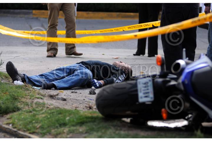 MÉXICO, D.F., 11MAYO2009.- Un sujeto de 40 años aproximadamente, perdió la vida al derrapar en su motocicleta placas 9918-V. Impactándose contra un poste en la esquina que forman las calles de Ohio y Dakota en la colonia Napoles perímetro de la Delegación Benito Juárez. FOTO: LUIS CARBAYO/CUARTOSCURO.COM