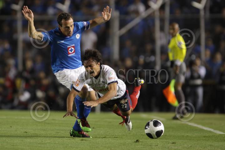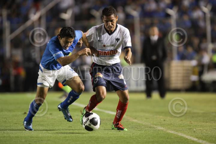 MÉXICO, D.F., 13DICIEMBRE2009.- César Villaluz disputa el balon con Gerardo Galindo durante la final del torneo de Apertura 2009, jugado en el estadio Azul donde el equipo del Monterrey derroto al equipo del Monterrey con un marcador global de 6-4 FOTO: SÁSHENKA GUTIÉRREZ/CUARTOSCURO.COM