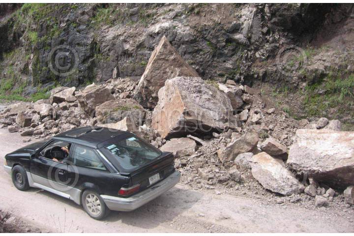 CHILPANCINGO, GUERRERO, 31AGOSTO2007.- Aspecto del derrumbe que se registro sobre la carretera federal Chilpancingo-Tixtla, debido a las constantes lluvias que se han registrado en la entidad. FOTO:OSCAR ALVARADO/CUARTOSCURO.COM