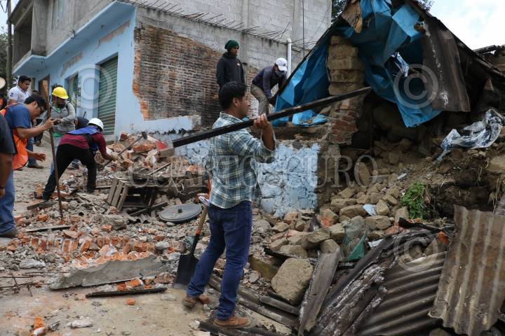 ECATZINGO, ESTADO DE MÉXICO, 22SEPTIEMBRE2017.- Continúan las labores de demolición de casas en riesgo de colapso, tras el sismo que se registró el pasado 19 de septiembre. FOTO: SAÚL LÓPEZ /CUARTOSCURO.COM