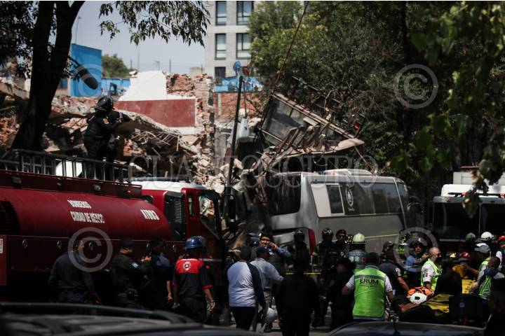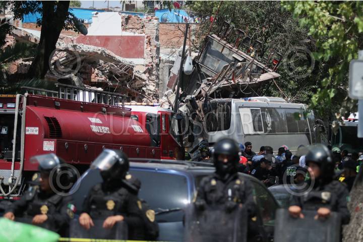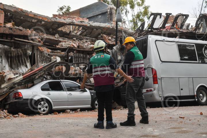 CIUDAD DE MÉXICO, 03JUNIO2024.- Elementos de la Policía, protección civil y bomberos resguardan ñ calle Atenas y Abraham González a un costado de gobernación ante el derrumbe del ex centro de espectáculos el patio. FOTO: ANDREA MURCIA /CUARTOSCURO.COM