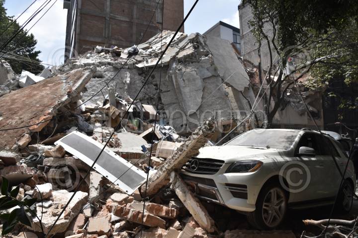 CIUDAD DE MÉXICO, 19SEPTIEMBRE2017.- Un piso de un edificio de la calle Sonora de la colonia Condesa, se derrumbó debido al sismo registrado esta tarde con una magnitud de 7.1 grados Richter con epicentro en Puebla. FOTO: MARIO JASSO /CUARTOSCURO.COM