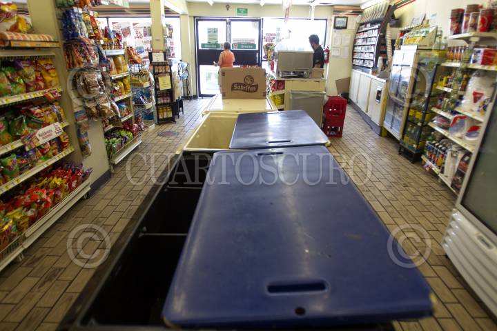 MONTERREY, NUEVO LEÓN, 05MAYO2020.- Hieleras para cerveza se encuentran vacías en establecimientos que los ofrecen por el desabasto ante el paro de producción de cerveza en el país derivado de la pandemia de Covid-19. FOTO: GABRIELA PÉREZ MONTIEL / CUARTOSCURO.COM