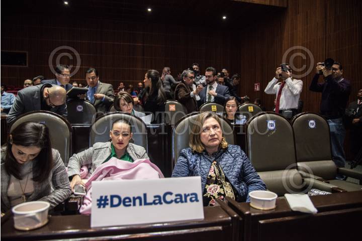 CIUDAD DE MÉXICO, 15ENERO2019.- Las senadoras panistas Martha Cecilia Márquez y Xóchitl Gálvez, durante la sesión de la Comisión Permanente de la Cámara de Diputados, la cual se centró en discutir la ausencia de los titulares de la Secretaría de Hacienda y Crédito Público (SHCP), Secretaría de Energía (SENER), PEMEX y Profeco, , a la Tercera Reunión de Trabajo de la Tercera Comisión Permanente, además de que se aprobó el dictamen a la reforma del artículo 19 constitucional en materia de prisión preventiva oficiosa, el cual incluye como delito grave el uso de programas sociales con fines electorales, corrupción por enriquecimiento ilícito y delitos en materia de robo de hidrocarburos. FOTO: MARIO JASSO /CUARTOSCURO.COM