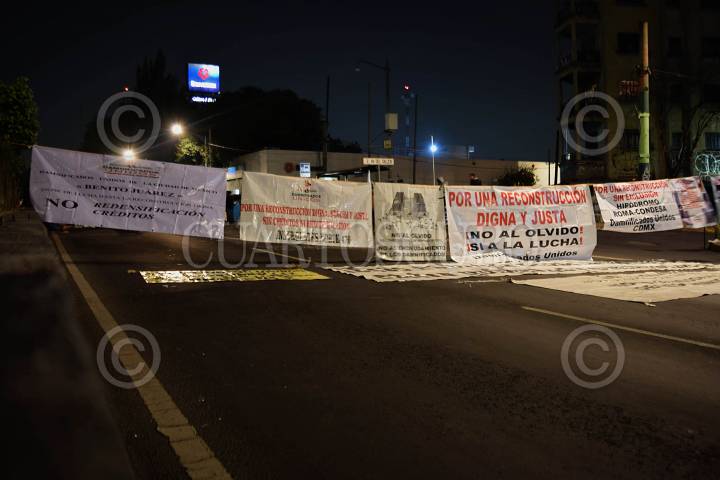 CIUDAD DE MÉXICO., 16ENERO2019.- Durante esta madrugada, permaneció el bloqueo de afectados por el sismo de septiembre de 2017, exigiendo que se cumpla el acuerdo como se había firmado en el sexenio pasado, en donde se les había prometido la reconstrucción de sus viviendas, como estaban antes del sismo. FOTO: LUIS CARBAYO /CUARTOSCURO.COM