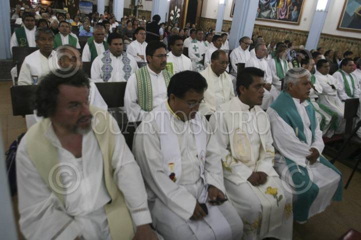 OAXACA, OAXACA, 16FEBRERO2012.- Este jueves se desarrolló una misa que la diócesis de Antequera denominó como del "desagravio", la cual fue oficiada por el arzobispo de Antequera José Luis Chávez Botello, a la ceremonia religiosa asistieron padres pertenecientes de distintas parroquias de la capital. La misa se celebró la parroquia de Nuestra Señora de los Pobres. La celebración litúrgica se debió al robo de las reliquias de la Iglesia de San Pedro Yosotato el pasado 8 de febrero, en dicho robo también hurtaron varios copones, códices y ostias consagradas. FOTO: ARTURO PÉREZ ALFONSO/CUARTOSCURO.COM
