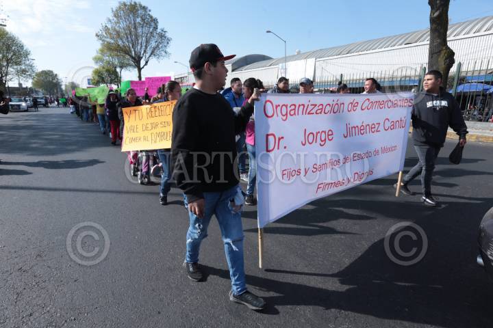 TOLUCA, ESTADO DE MÉXICO, 24ENERO2018.- Después de haber sido desalojados de la zona del mercado Juárez, comerciantes ambulantes marcharon al ayuntamiento de Toluca, exigiendo los dejen trabajar y que sean ubicados en una zona donde puedan vender sus productos sin afectar a nadie. FOTO: ARTEMIO GUERRA BAZ /CUARTOSCURO.COM