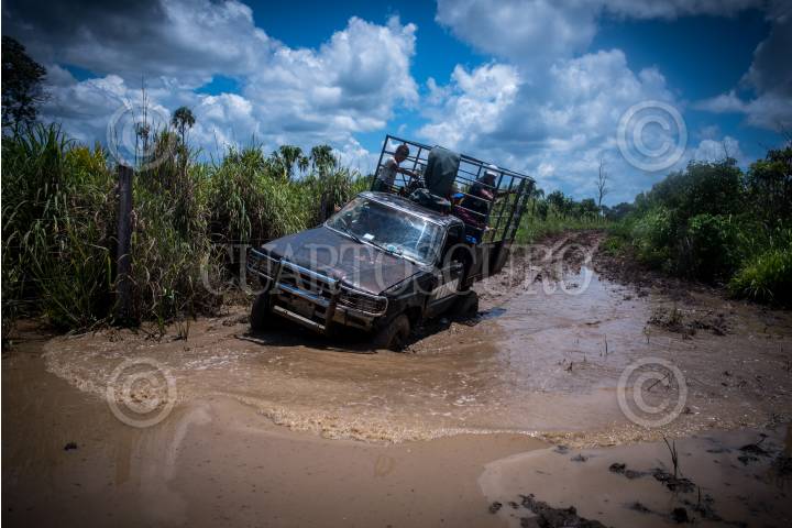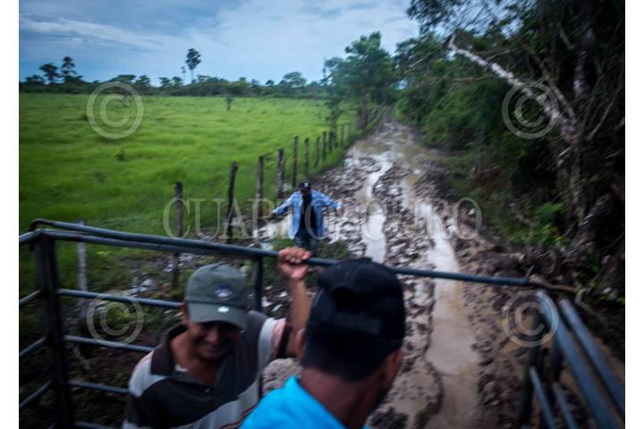 CANDELARIA, CAMPECHE, 22SEPTIEMBRE2018.- Han pasado ya más de 15 meses desde que el gobierno guatemalteco, a través del Consejo Nacional de Áreas Protegidas (CONAP) accionando con un operativo de más de 1400 policías, 400 militares y personal del CONAP desalojó de su comunidad y viviendas a los habitantes de la aldea Laguna Larga, situada en el llamado Triángulo Candelaria en la Reserva de la Biosfera Maya, en el departamento El Petén. Hasta el día de hoy, de la aldea sobreviven solamente las ruinas, el pasto ha crecido y deja ver apenas los restos de las viviendas, iglesias y establecimientos, inmuebles que fueron destruidos con moto sierras y quemados aquella noche del 2 de Junio del 2017, por el elementos del ejército nacional. La escuela sigue en pie, ocupada por un destacamento militar del ejército Guatemalteco, el cual la organización defensora de Derechos humanos “Voces Meseoamericanas”, quienes han acompañado a los desplazados Guatemaltecos, asegura se trata de un “Batallón Kaibil Destacamento Militar Laguna Larga”. Los 490 habitantes de Laguna Larga sobreviven hoy y desde la noche del desalojo en la línea de demarcación entre México y Guatemala en donde establecieron su campamento. En el año 2000, indígenas y ladinos provenientes de distintas regiones de Guatemala como Ch’orti’s de Chiquimula, Q’eqchi’s de Petén e Izabal, Kakchiqueles del altiplano, entre otras se asentaron en esta localidad que se encuentra a solo 3 kilómetros de la línea fronteriza entre los dos países. Autoridades mexicanas del Instituto Nacional de Migración y Grupo Beta, apoyaron a los desplazados Guatemaltecos durante las primeras semanas del desalojo con asistencia médica y alimentos enlatados, el día de hoy los Guatemaltecos desplazados no reciben apoyo por parte de ninguno de los dos gobiernos, algunas organizaciones como Voces Mesoamericanas y Médicos Sin Fronteras han asistido a los guatemaltecos ubicados en los linderos de Guatemala y Campeche. Las condiciones precarias de vida ante la pérdida de sus tierras a obligado a los hombres de la comunidad a emplearse como peones en las fincas del ejido de “El Desengaño” en suelo mexicano, trabajando por 150 pesos el día y regresando los fines de semana con sus esposas, hijos y ancianos, se abastecen de alimentos en “El Desengaño”, a 5 kilómetros de la línea fronteriza del lado mexicano, atravesando un camino enlodado en el cual, la camioneta 4x4 que sobrevivió al desalojo, llamada con cariño “El Rey del Lodo”, apenas puede transitar en días lluviosos. En la foto, "El Rey del Lodo" se abre paso en un camino fangoso que separa el campamento de desplazados de la comunidad "El Desengaño". FOTO: PEDRO ANZA /CUARTOSCURO.COM
