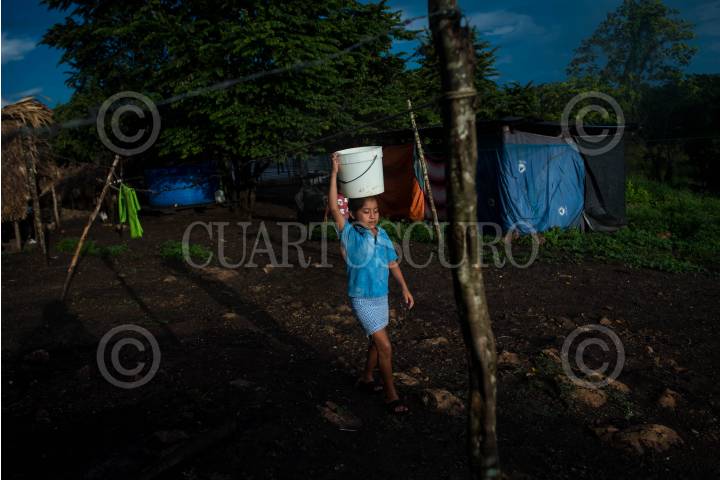 CANDELARIA, CAMPECHE, 22SEPTIEMBRE2018.- Han pasado ya más de 15 meses desde que el gobierno guatemalteco, a través del Consejo Nacional de Áreas Protegidas (CONAP) accionando con un operativo de más de 1400 policías, 400 militares y personal del CONAP desalojó de su comunidad y viviendas a los habitantes de la aldea Laguna Larga, situada en el llamado Triángulo Candelaria en la Reserva de la Biosfera Maya, en el departamento El Petén. Hasta el día de hoy, de la aldea sobreviven solamente las ruinas, el pasto ha crecido y deja ver apenas los restos de las viviendas, iglesias y establecimientos, inmuebles que fueron destruidos con moto sierras y quemados aquella noche del 2 de Junio del 2017, por el elementos del ejército nacional. La escuela sigue en pie, ocupada por un destacamento militar del ejército Guatemalteco, el cual la organización defensora de Derechos humanos “Voces Meseoamericanas”, quienes han acompañado a los desplazados Guatemaltecos, asegura se trata de un “Batallón Kaibil Destacamento Militar Laguna Larga”. Los 490 habitantes de Laguna Larga sobreviven hoy y desde la noche del desalojo en la línea de demarcación entre México y Guatemala en donde establecieron su campamento. En el año 2000, indígenas y ladinos provenientes de distintas regiones de Guatemala como Ch’orti’s de Chiquimula, Q’eqchi’s de Petén e Izabal, Kakchiqueles del altiplano, entre otras se asentaron en esta localidad que se encuentra a solo 3 kilómetros de la línea fronteriza entre los dos países. Autoridades mexicanas del Instituto Nacional de Migración y Grupo Beta, apoyaron a los desplazados Guatemaltecos durante las primeras semanas del desalojo con asistencia médica y alimentos enlatados, el día de hoy los Guatemaltecos desplazados no reciben apoyo por parte de ninguno de los dos gobiernos, algunas organizaciones como Voces Mesoamericanas y Médicos Sin Fronteras han asistido a los guatemaltecos ubicados en los linderos de Guatemala y Campeche. Las condiciones precarias de vida ante la pérdida de sus tierras a obligado a los hombres de la comunidad a emplearse como peones en las fincas del ejido de “El Desengaño” en suelo mexicano, trabajando por 150 pesos el día y regresando los fines de semana con sus esposas, hijos y ancianos, se abastecen de alimentos en “El Desengaño”, a 5 kilómetros de la línea fronteriza del lado mexicano, atravesando un camino enlodado en el cual, la camioneta 4x4 que sobrevivió al desalojo, llamada con cariño “El Rey del Lodo”, apenas puede transitar en días lluviosos. FOTO: PEDRO ANZA /CUARTOSCURO.COM