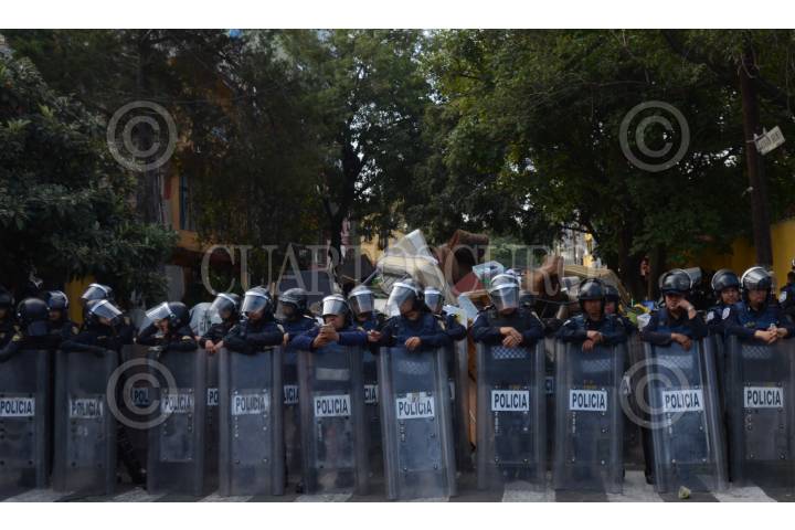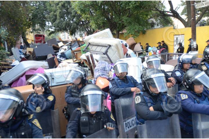 CIUDAD DE MÉXICO, 15OCTUBRE2019.- Más de 20 familias fueron desalojadas del edificio que habitaban, ubicado en la calle de Adrián Brouwer y avenida San Lucía, colonia Alfonso 13 de la alcaldía Álvaro Obregón, durante un operativo encabezado por decenas de policías con escudos antimotines, algunos de los afectados fueron golpeados durante las acciones. FOTO: ARMANDO MONROY /CUARTOSCURO.COM