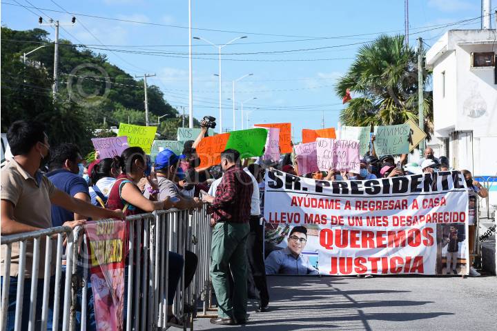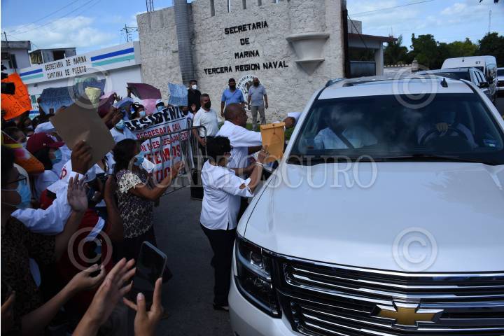 Personas que se manifestaban a las afueras de la región naval, interceptaron el convoy del presidente Andrés Manuel López Obrador para pedir su intervención en el conflicto.
