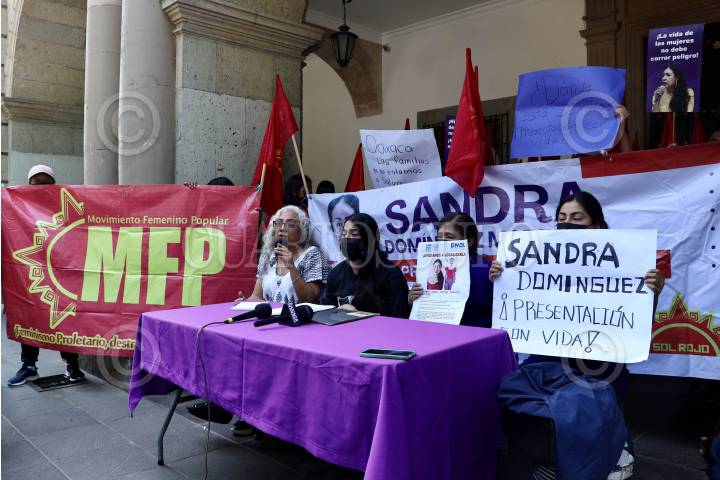 OAXACA, OAXACA, 06NOVIEMBRE2024.- A 33 días de su desaparición, familiares, amigos y organizaciones demandaron la presentación con vida de la defensora y abogada Ayuujk, Sandra Estefana Domínguez Martínez. Las hermanas de Sandra y su madre, Araceli Martínez, denunciaron intimidaciones y hostigamiento, además de revictimización de autoridades en contra de la defensora, por ello decidieron instalarse en plantón frente al acceso principal del Palacio de Gobierno de Oaxaca. En el estado se han reportado 686 desapariciones de mujeres durante la actual administración que encabeza el morenista, Salomón Jara Cruz. FOTO: SANDRA DOMÍNGUEZ/CUARTOSCURO.COM