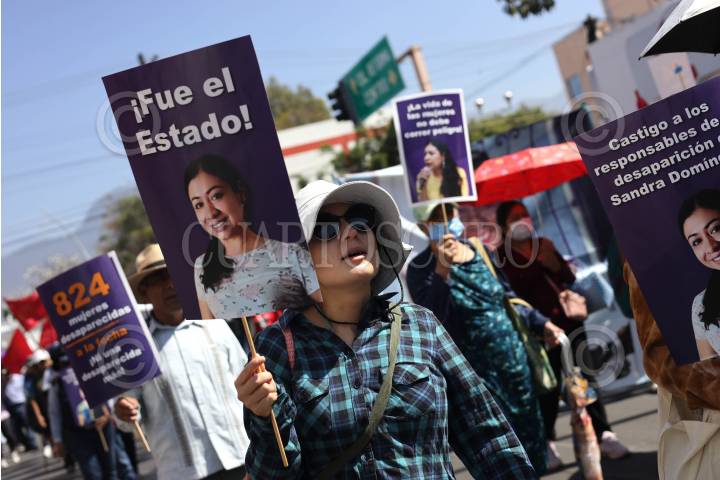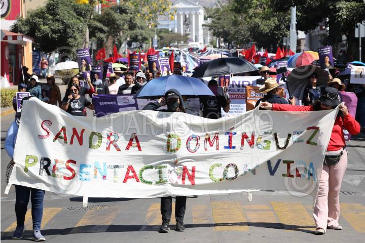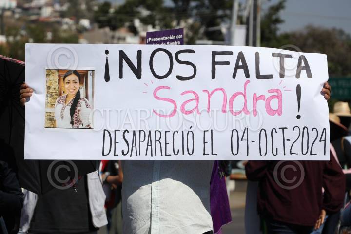 OAXACA DE JUÁREZ, OAXACA, 04MARZO2025.- Familiares, activistas e integrantes de organizaciones sociales marcharon en la ciudad de Oaxaca para exigir la presentación con vida de la abogada y activista Sandra Estefana Domínguez a 5 meses de su desaparición forzada. La familia de la abogada indígena conformó el comité “Komite Pëjy Tyotk” (Flores y mariposas en ayuujk), para reforzar la búsqueda y exigencia a las autoridades en la investigación del caso. Sandra Domínguez Martínez desapareció el pasado 4 de octubre de 2024, junto con su esposo Alexander Hernández Hernández en los límites de Oaxaca y Veracruz. FOTO: CAROLINA JIMÉNEZ MARISCAL/CUARTOSCURO.COM