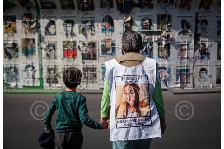 CIUDAD DE MÉXICO, 20ABRIL2025.- María del Carmen Volante, madre de Pamela Gallardo Volante, observa los diversos rostros de personas desaparecidas en la llamada Glorieta de las y los Desaparecidos, en este punto partió la segunda rodada encabezada por las familias que buscan a sus seres queridos. FOTO: ANDREA MURCIA /CUARTOSCURO.COM