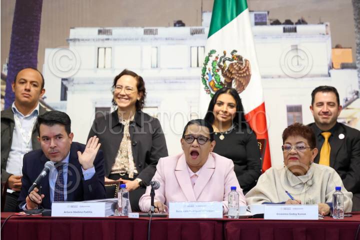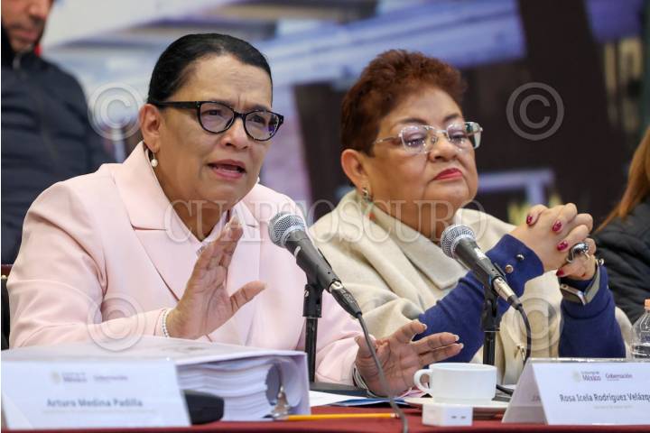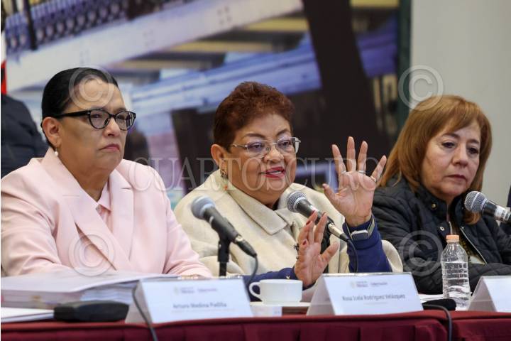 CIUDAD DE MÉXICO, 23JUNIO2025.- Rosa Icela Rodríguez, secretaria de Gobernación; Ernestina Godoy Ramos, Consejera Jurídica de la Presidencia, y María del Rosario Piedra Ibarra, presidenta de la Comisión Nacional de Derechos Humanos, durante la presentación del informe de avance de las mesas de diálogo sobre la agenda de desaparición y búsqueda de personas con colectivos y familias. Ahí la titular de la Política Interna adelantó que varias de estas propuestas serán discutidas en el período extraordinario del Poder Legislativo. FOTO: MOISÉS PABLO/CUARTOSCURO.COM