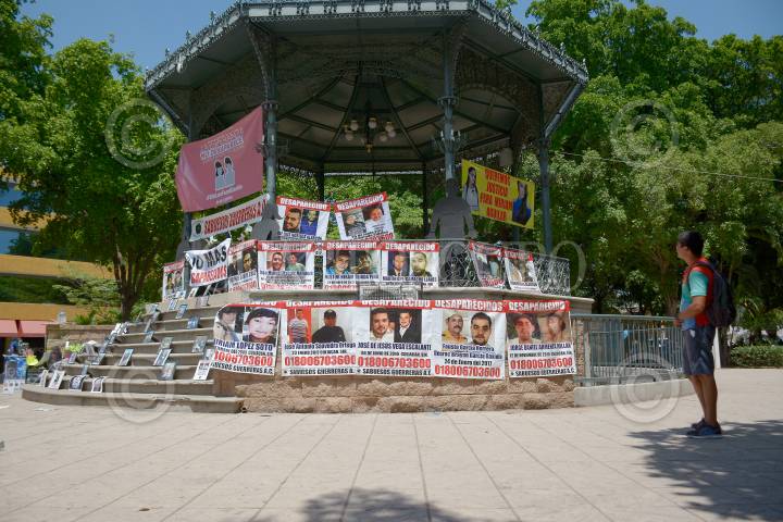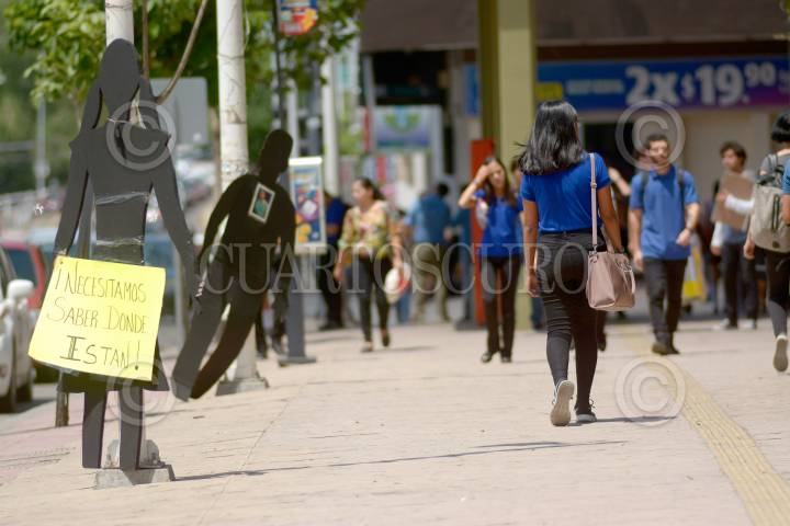 CULIACÁN, SINALOA, 30AGOSTO2018.- Familiares de personas desaparecidas, principalmente durante la "guerra contra el narco", se sumaron a las manifestaciones nacionales en el marco del Día Internacional de las Víctimas de Desapariciones Forzadascon una protesta en el quiosco de la Plazuela Álvaro Obregón; las madres colocaron siluetas emulando las sombras de las personas desaparecidas, retratos, huellas con mensajes de amor hacia sus seres queridos, e imágenes que han acumulado en las búsquedas. María Isabel Cruz Bernal, presidenta del colectivo Sabuesos Guerreras S. A. explicó que el motivo de la manifestación es para exigir a las autoridades el esclarecimiento de los 37 mil casos de desaparecidos en todo el país, 4 mil de los cuales corresponden a Sinaloa, “estamos aquí representando la voz de todos nuestros hijos, esposos, hermanos y nietos, compañeros de muchos, entonces gritar su nombre, hacerlos visibles, somos la voz de los que no tienen voz y el estado de Sinaloa es un estado fallido”, dijo. FOTO: JUAN CARLOS CRUZ /CUATOSCURO.COM