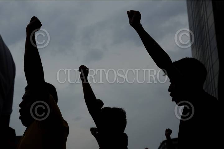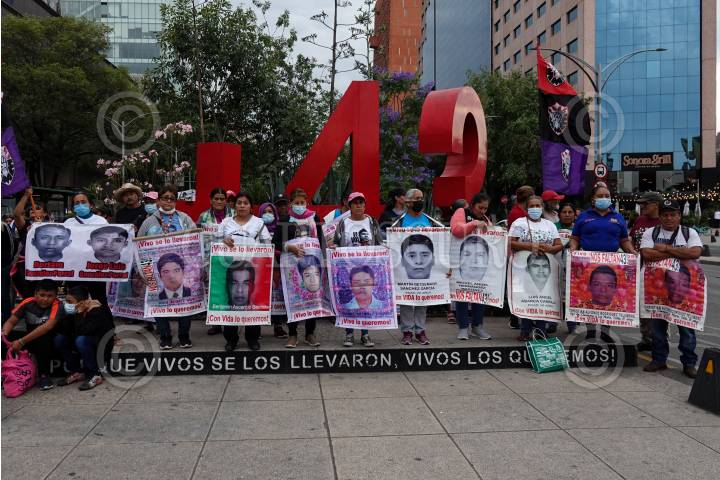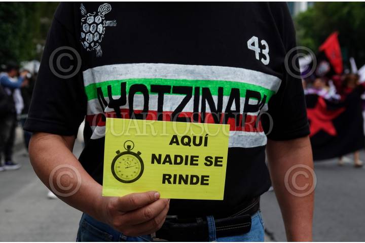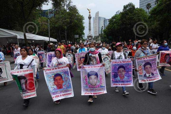 Marcha en el marco del noveno aniversario de la desaparición forzada de los 43 normalistas de Ayotzinapa, Guerrero del Ángel de la Independencia al Hemiciclo a Juárez.