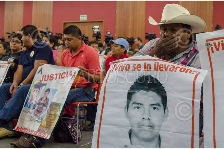 MÉXICO, D.F., 06SEPTIEMBRE2015.- Padres de los normalistas desaparecidos de Ayotzinapa, recibieron una copia del Informe Ayotzinapa. El Grupo Interdisciplinario de Expertos Independientes (GIEI), nombrado por la Comisión Interamericana de Derechos Humanos entregó las primeras conclusiones en torno a la desaparición de los 43 normalistas de Ayotzinapa el pasado 26 y 27 de septiembre del año anterior. Una de las conclusiones finales, según lo comunicado ante medios, es que los normalistas “no fueron cremados en el basurero de Cocula”. FOTO: MARÍA JOSÉ MARTÍNEZ /CUARTOSCURO.COM