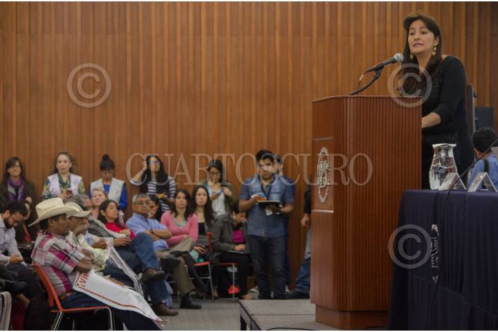 MÉXICO, D.F., 06SEPTIEMBRE2015.- El Grupo Interdisciplinario de Expertos Independientes (GIEI), nombrado por la Comisión Interamericana de Derechos Humanos entregó las primeras conclusiones en torno a la desaparición de los 43 normalistas de Ayotzinapa el pasado 26 y 27 de septiembre del año anterior. Una de las conclusiones finales, según lo comunicado ante medios, es que los normalistas “no fueron cremados en el basurero de Cocula”. En la imagen, Bertha Nava, madre del normalista Julio César Ramírez Nava, durante la presentación del Informe Ayotzinapa en la CDHDF. FOTO: MARÍA JOSÉ MARTÍNEZ /CUARTOSCURO.COM