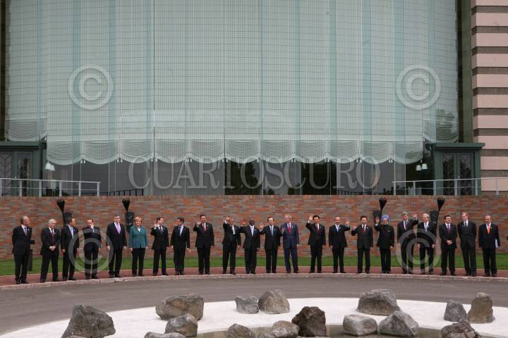 TOYACO, JAPON, 09JULIO2008.- Los presidentes de los países integrantes del G8 y G5 e invitados se tomaron la foto oficial del encuentro, en la explada del hotel Windsor. FOTO: ARIEL GUTIERREZ/CUARTOSCURO.COM