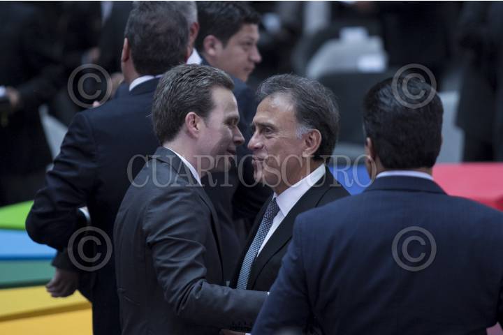 CIUDAD DE MÉXICO, 26ABRIL2017.- Manuel Velasco, gobernador de Chiapas, y Miguel Ángel Yunes Linares, gobernador de Veracruz, durante la instalación del Consejo Nacional de la agenda 2030 para el desarrollo sostenible a nivel nacional. FOTO: GALO CAÑAS /CUARTOSCURO.COM