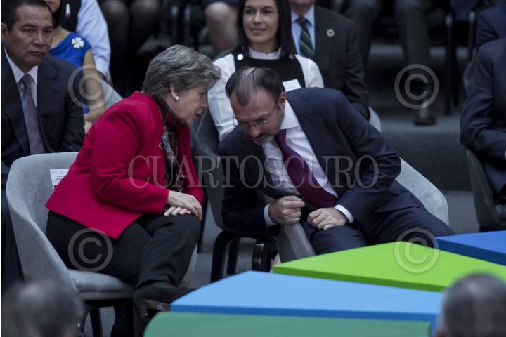 CIUDAD DE MÉXICO, 26ABRIL2017.- Alicia Bárcena, secretaria ejecutiva de la Comisión Económica para América Latina y El Caribe (CEPAL), y Luis Videgaray Caso, secretario de Relaciones Exteriores, durante la instalación del Consejo Nacional de la agenda 2030 para el desarrollo sostenible a nivel nacional. FOTO: GALO CAÑAS /CUARTOSCURO.COM