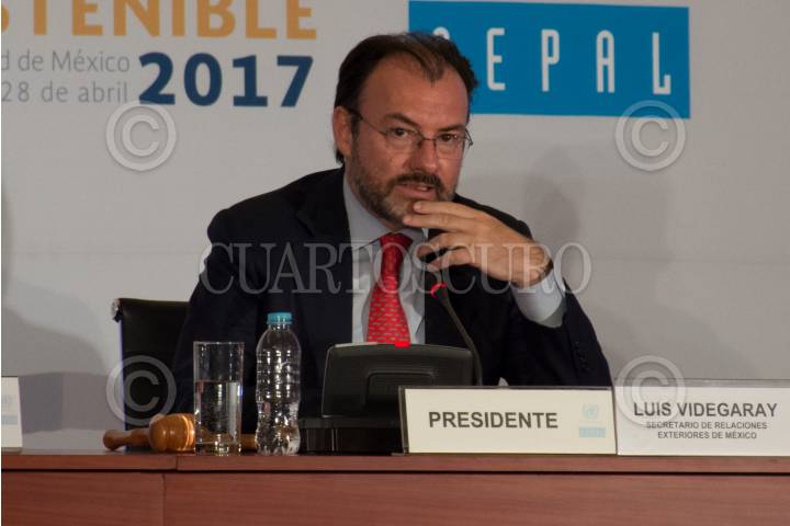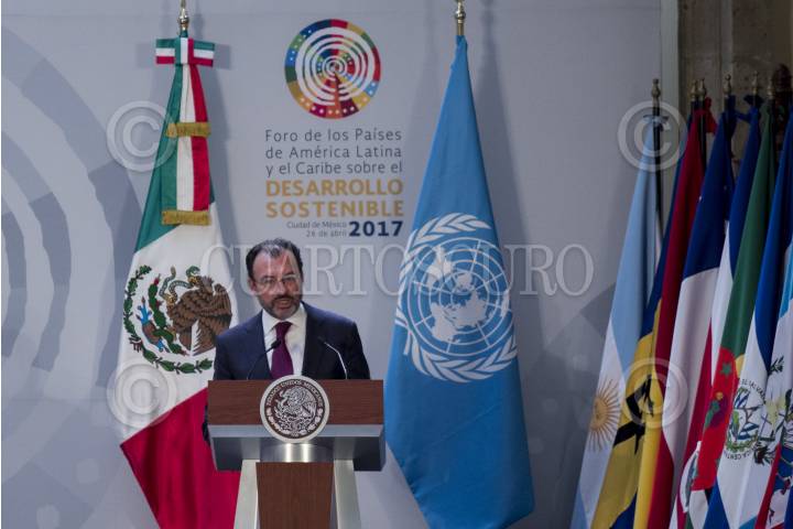 CIUDAD DE MÉXICO, 28ABRIL2017.- Luis Videgaray, secretario de Relaciones Exteriores de México (SRE), durante la clausura de la Primera Reunión del Foro de los Países de América Latina sobre Desarrollo Sostenible (CEPAL), donde se presentaron las conclusiones sobre los desafíos regionales de la implementación de la Agenda 2030. FOTO: MARIO JASSO /CUARTOSCURO.COM