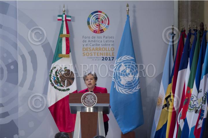 CIUDAD DE MÉXICO, 26ABRIL2017.- Alicia Bárcena, secretaria ejecutiva de la Comisión Económica para América Latina y el Caribe (CEPAL), durante la primera reunión del foro de los países de América Latina y el caribe sobre desarrollo sostenible, en Palacio Nacional. FOTO: GALO CAÑAS /CUARTOSCURO.COM