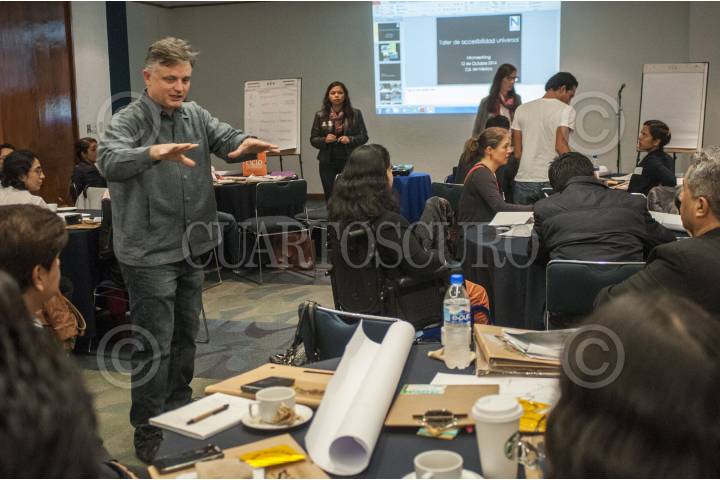 MÉXICO, D.F., 12OCTUBRE2014.- José Luis Gutiérrez, consejero de Libre Acceso A.C., durante el taller "Ciudades Incluyentes: Accesibilidad Universal", impartido en el marco del X Congreso Internacional de Transporte Sustentable "Reinventando las Ciudades", que realiza el Centro de Transporte Sustentable EMBARQ México. FOTO: ISAAC ESQUIVEL /CUARTOSCURO.COM