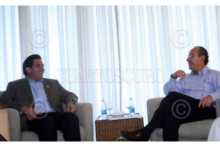 SAHUIPE BAHIA BRASIL, 16 DICIEMBRE 2008.- Felipe Calderon Presidete de México durante la reunión bilateral con el presidente de Panama Martín TorrijoEspino dentro de su participación en la cumbre de America Latina y el Caribe sobre integración y desarrollo. FOTO: ALFREDO GUERRERO/CUARTOSCURO.COM